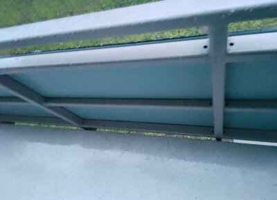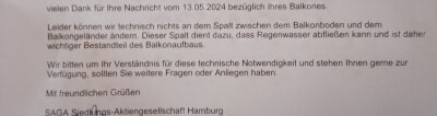 Denn die Saga hat bei allen Balkons über mir und auch bei meinem zwischen dem Balkongeländer und dem Balkonboden eine freie Fläche gelassen