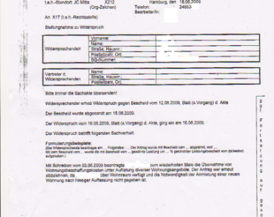 Wenn also ein kommunaler Laden, der bei Anmietung m.E.n. entscheidungserhebliche Sachverhalte verschwiegen hat den Boykott dieser Baumaßnahme befürchtet hat und diesen Boykott mit seinen Wohnungsangebote umgehen wollte, dann lag just in dem Moment für die GWG Wohnung Hasselbrookstr. 70 ein wichtiger Grund für eine Umzugsanerkennung 3/10 vor. Als ich mich aber weigerte mit dem Laden einen neuen Mietvertrag zu machen und andere Wohnungsangebote vorlegte, da war wie schon in dem ganzen Zeitrahmen bis 2/10 natürlich kein wichtiger Grund mehr gegeben und ich wurde so mit §22 Abs. 3 SGB II angehalten so lange in dem Schimmel und bei einem Laden zu hausen bis ich genötigt war mit dem Laden eine Vereinbarung über den Ablauf einer verschwiegenen Baumaßnahme und über den Ablauf von umfangreichen Arbeiten wegen Schimmel zu treffen